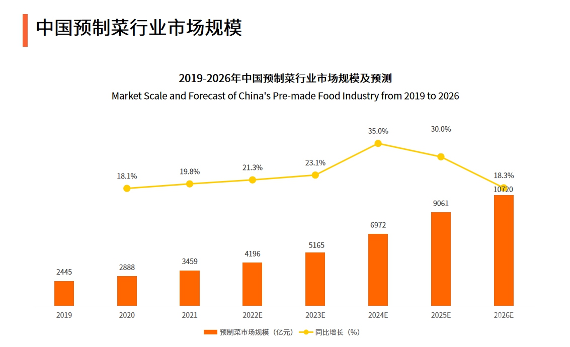 2026年預(yù)制菜市場(chǎng)規(guī)模將達(dá)10720億元。預(yù)制菜有效地降低了餐廳運(yùn)營(yíng)成本,且緩解了疫情期間堂食減少的損失,吸引了各大連鎖餐飲品牌入行布局。